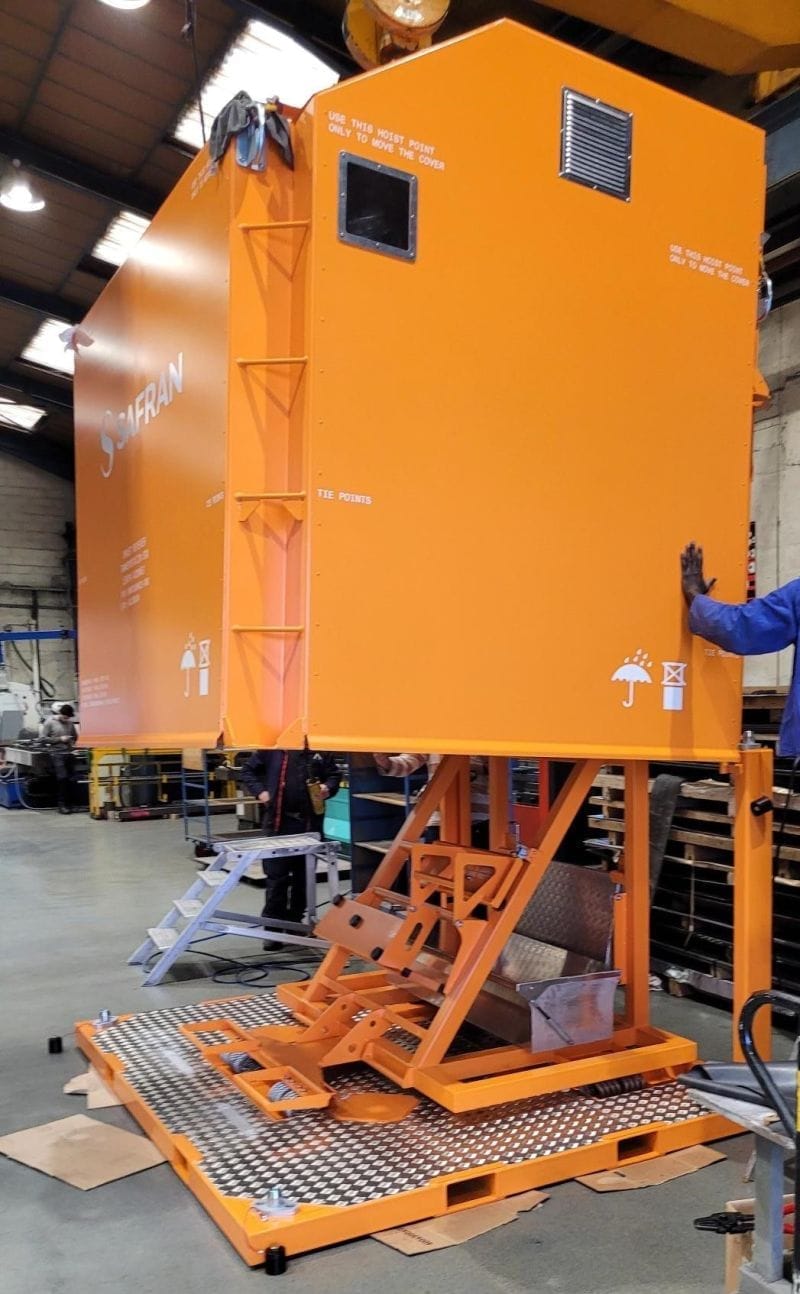 Caisse de transport sur mesure pour un outillage spécifique destiné à un acteur majeur de l'aéronautique. Fabriquée dans nos ateliers, cette caisse garantit la protection et le transport sécurisé d'équipements sensibles et de haute valeur. Grâce à notre expertise en chaudronnerie, en mécano-soudure et en peinture, nous avons pu répondre aux exigences strictes de ce projet, alliant précision et robustesse.